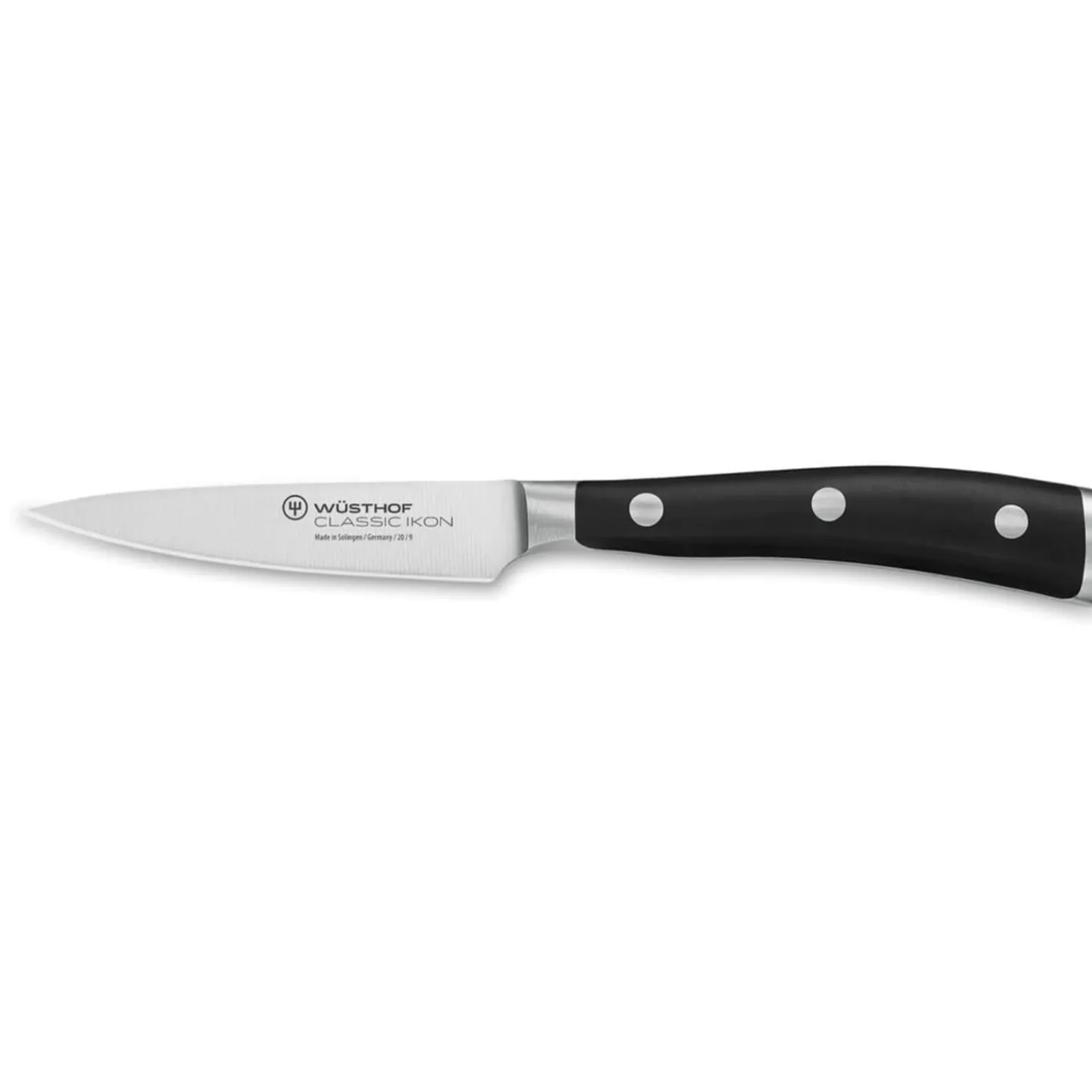 The Wusthof Classic Ikon Paring Knife has been precision engineered to create a high-performance blade that is both long-lasting and ultra-sharp. The well-balanced, steel-riveted handle is comfortable to hold and moulds well to the hand, thanks to its curved design. Wusthof knives are crafted from a single billet of high-grade stainless for optimum strength and go through a 40 step manufacturing process to maintain the exceptionally high-quality standards for which the brand is internationally recognised.