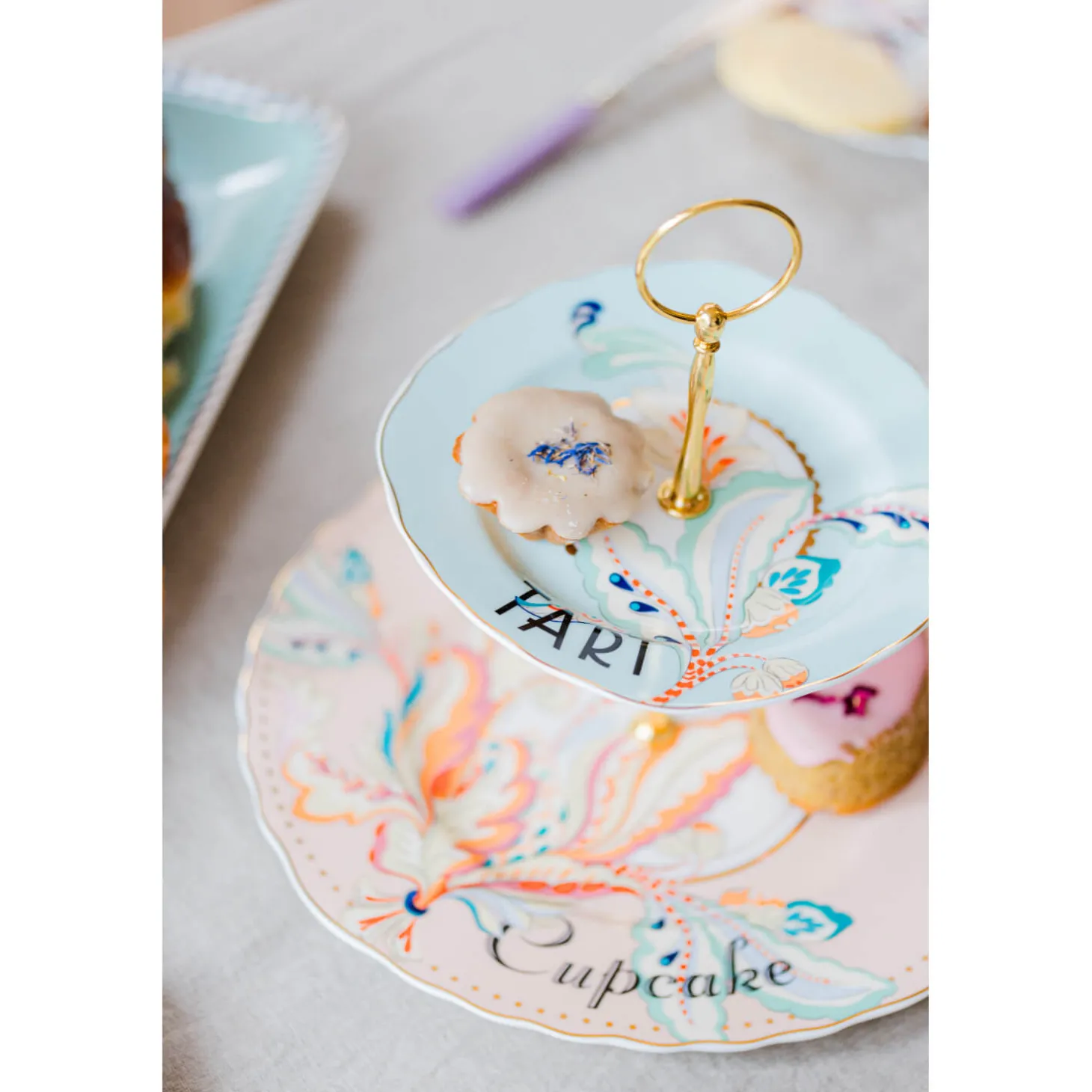 Yvonne Ellen presents the 2-Tier Fine China Cake Stand in Floral design. This British designer brings a touch of elegance and charm to her products each telling a whimsical tale using animal characters and playful slogans. Beautifully made with gold detailing and designed to make you smile, this cake stand is sure to add a touch of fun and sophistication to your table.