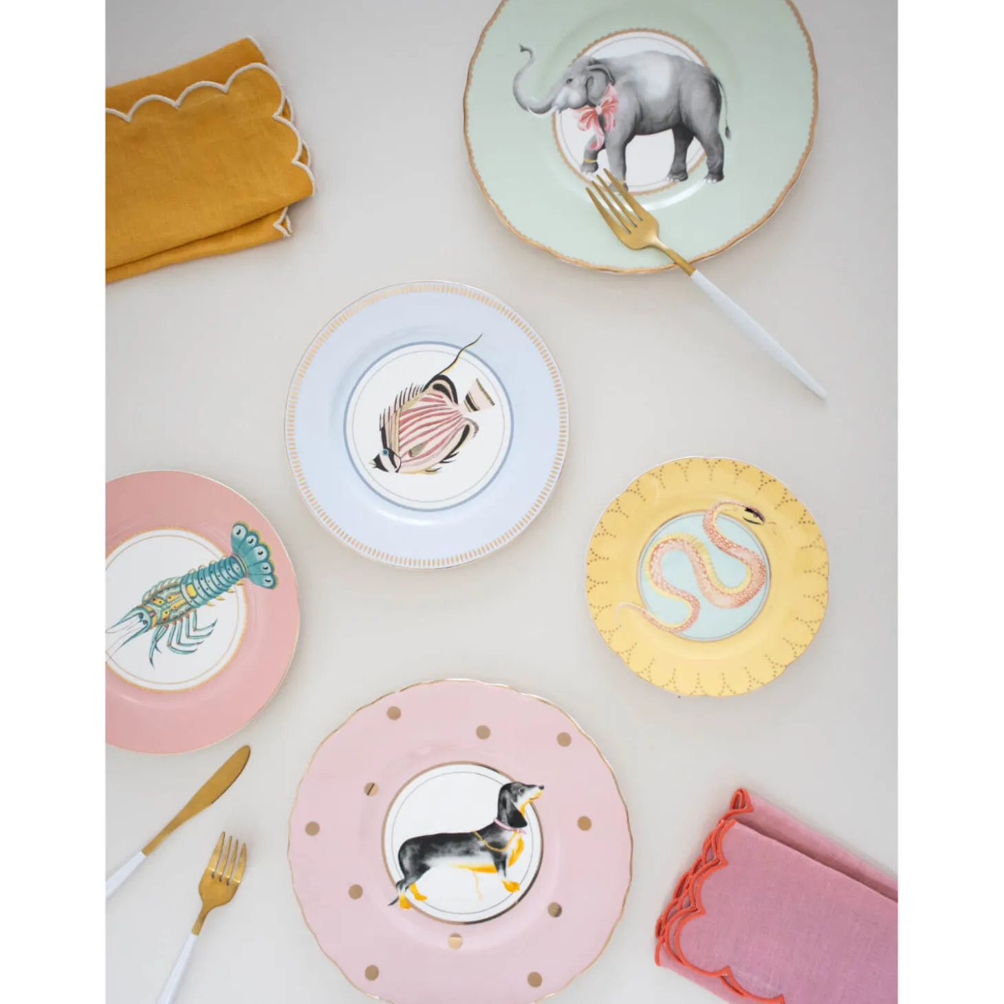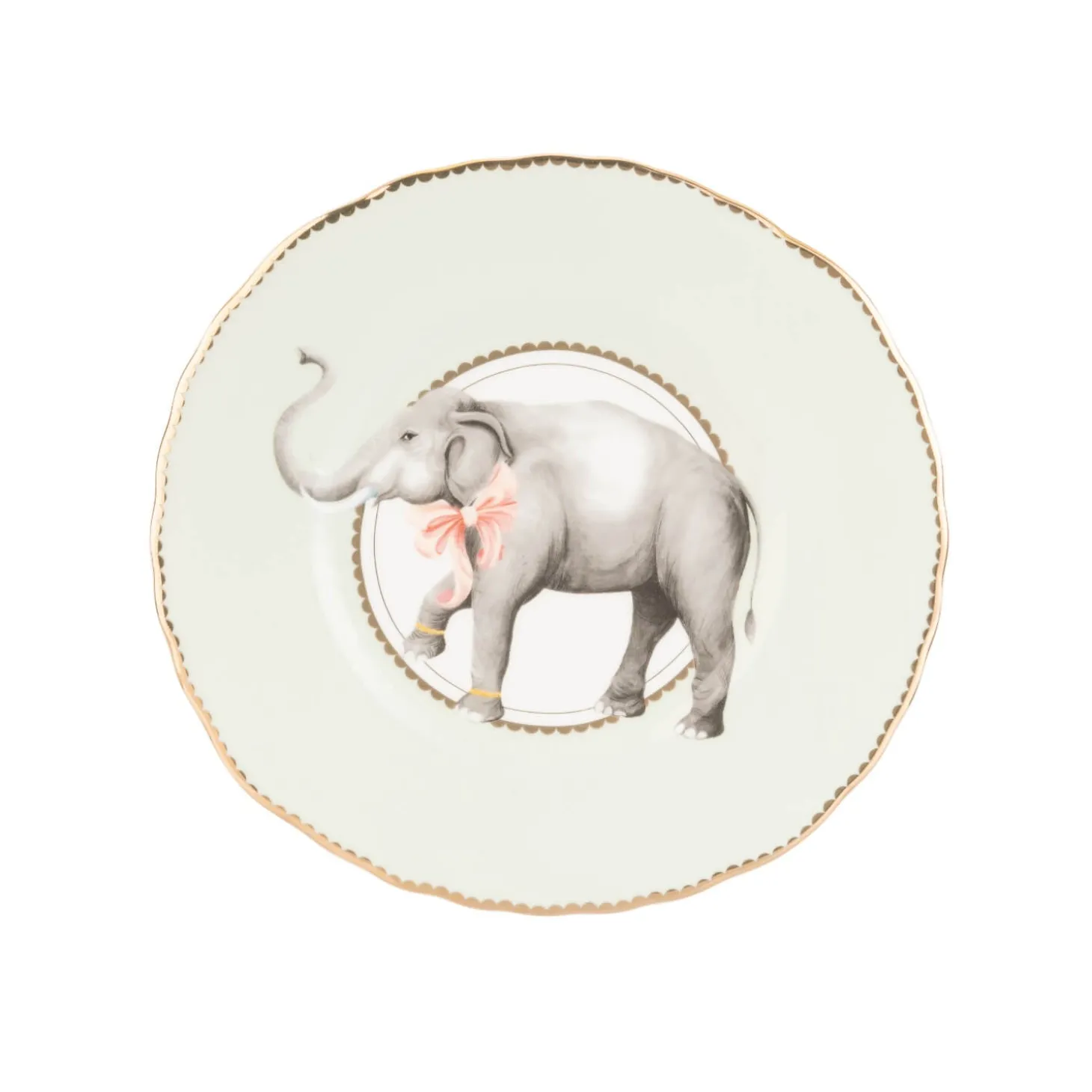 Yvonne Ellen presents the 23cm Fine China Sandwich Plate in Elephant design. Yvonne Ellen, a British designer, brings a touch of elegance and charm to her products each telling a whimsical tale using animal characters and playful slogans. Beautifully made with gold detailing and designed to make you smile, this plate is sure to add a touch of fun and sophistication to your table.