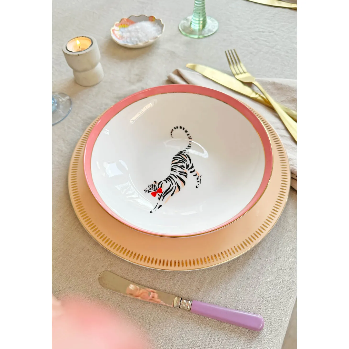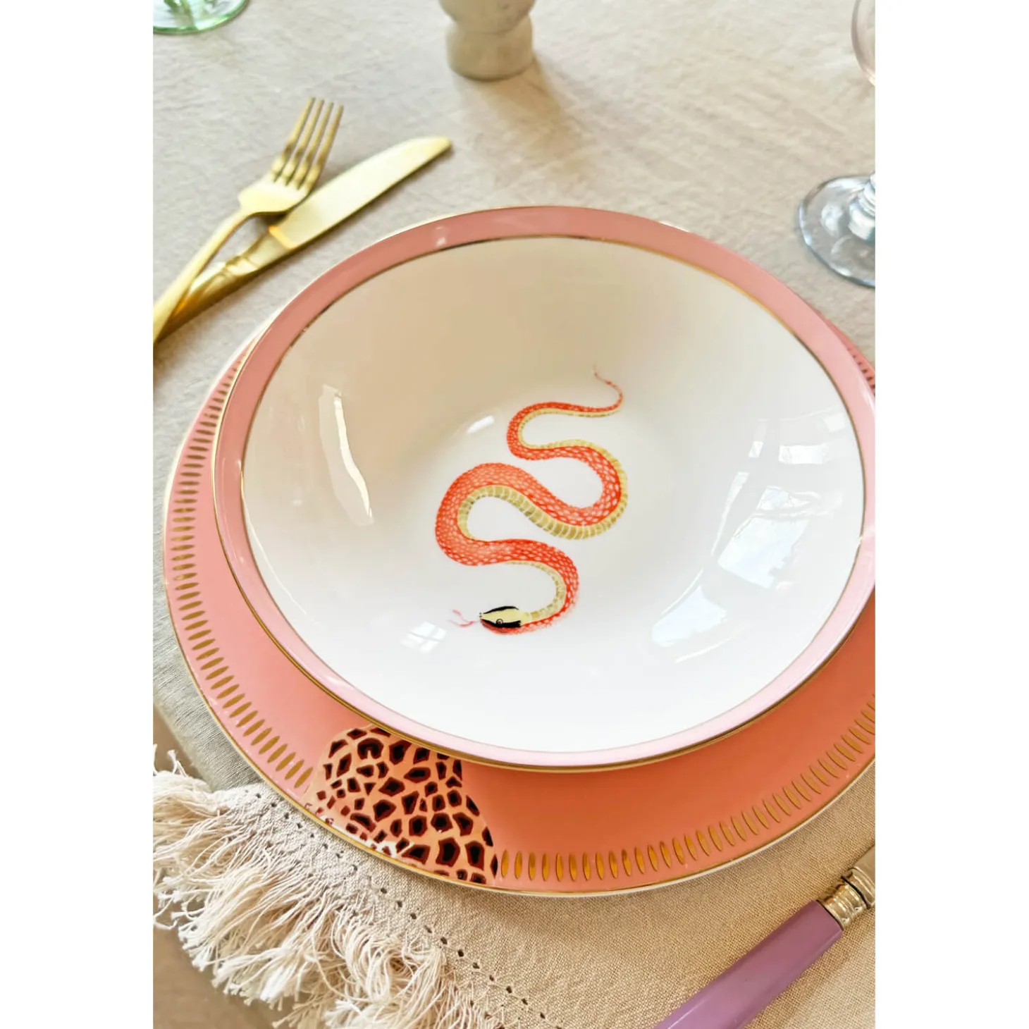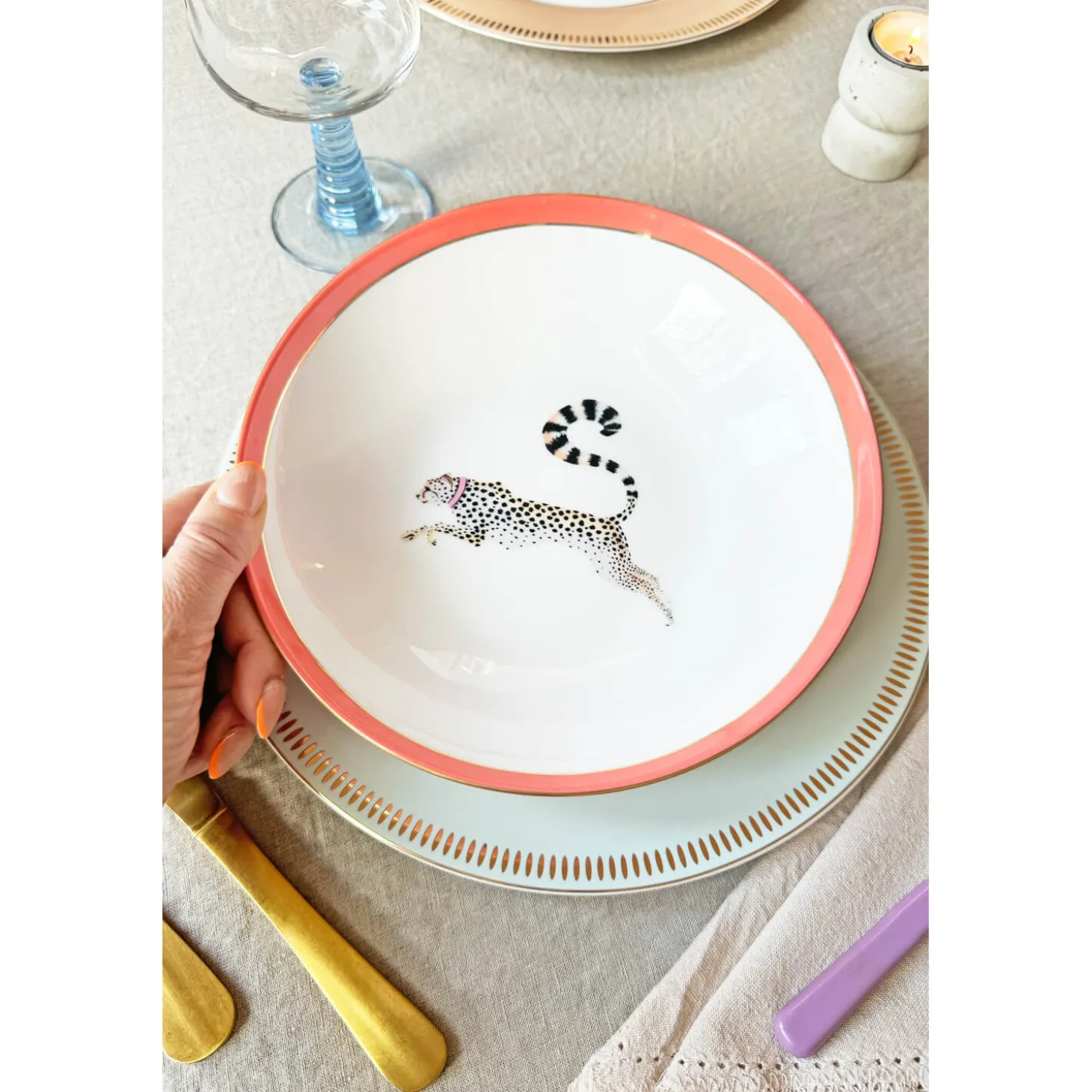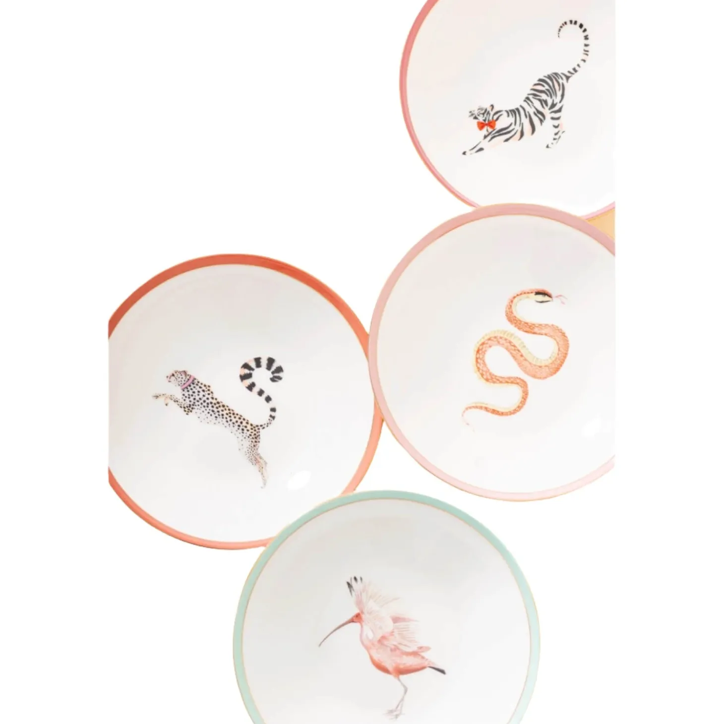Yvonne Ellen presents the 4-Piece Fine China Pasta Bowls in Animal design. Yvonne Ellen, a British designer, brings a touch of elegance and charm to her products each telling a whimsical tale using animal characters and playful slogans. Beautifully made with gold detailing and designed to make you smile, these bowls are sure to add a touch of fun and sophistication to your table.