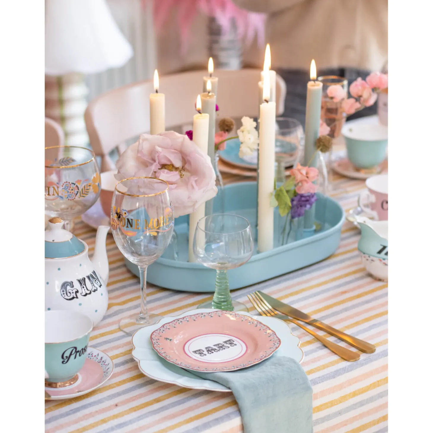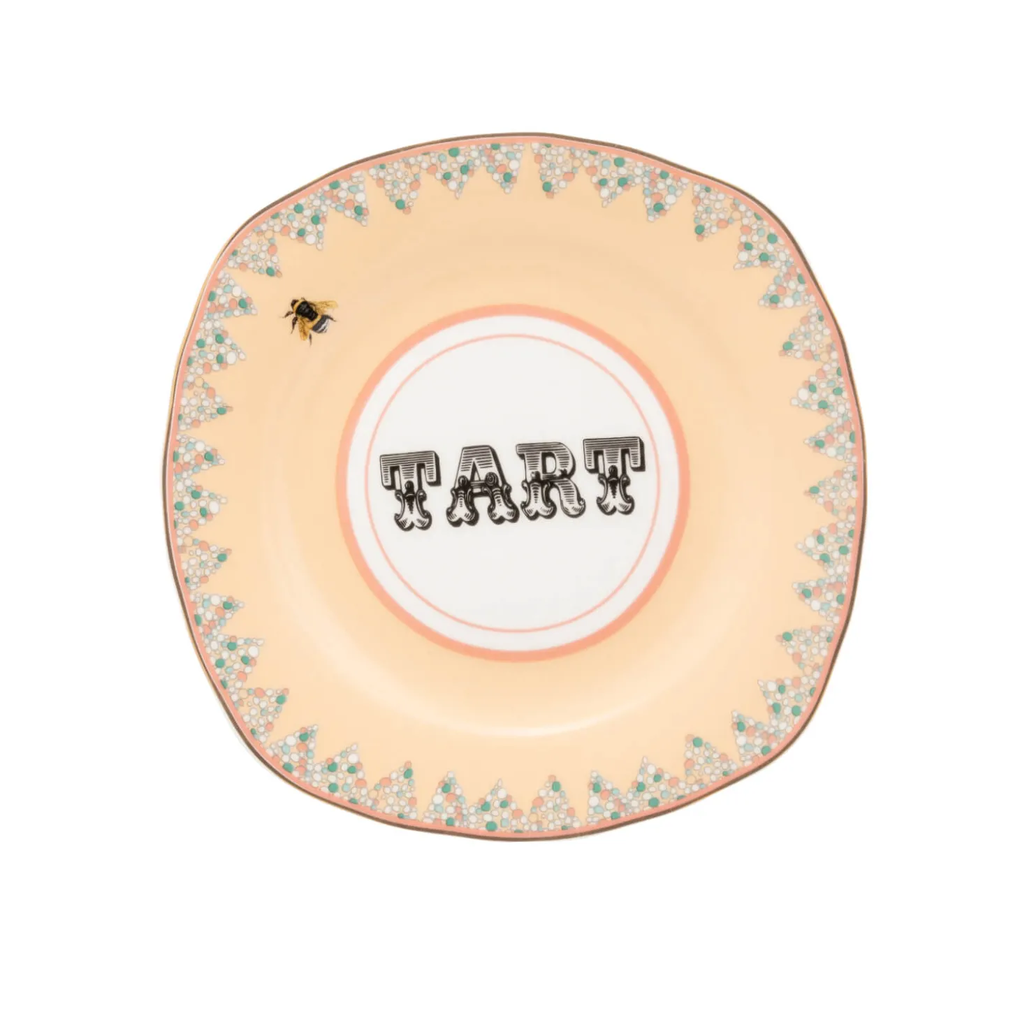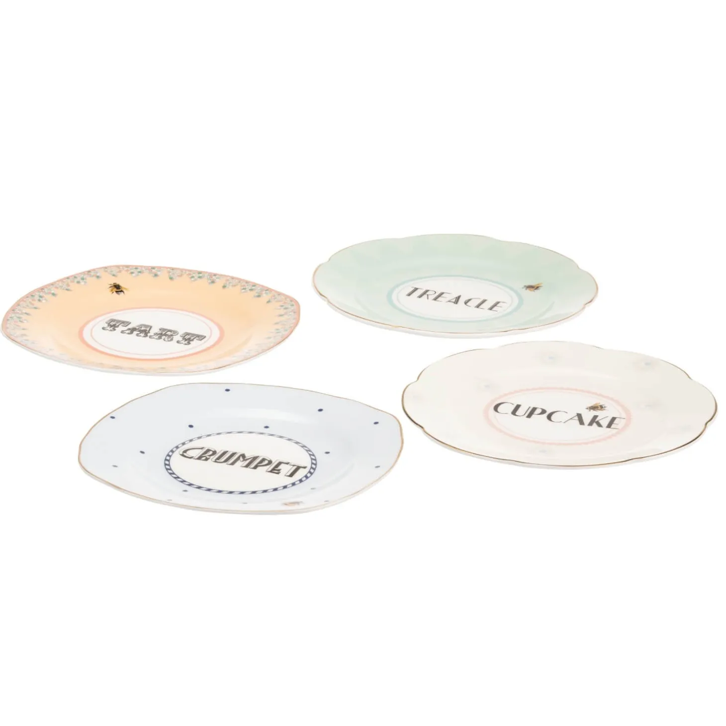 Yvonne Ellen presents the 4-Piece Fine China Tea Plate Set in Cheeky design. Yvonne Ellen, a British designer, brings a touch of elegance and charm to her products each telling a whimsical tale using animal characters and playful slogans. Beautifully made with gold detailing and designed to make you smile, these plates are sure to add a touch of fun and sophistication to your table.
