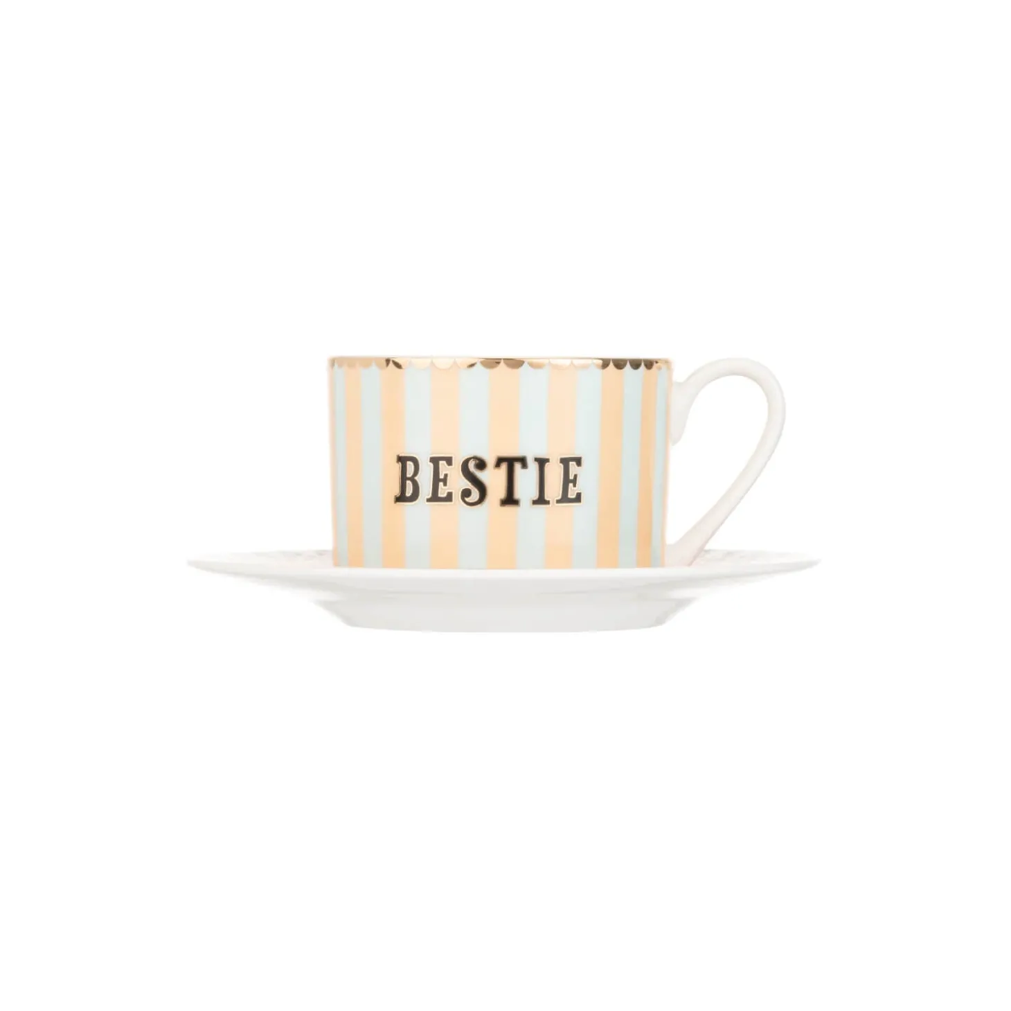 Yvonne Ellen presents the Fine China Teacup & Saucer in Bestie design. Yvonne Ellen, a British designer, brings a touch of elegance and charm to her products each telling a whimsical tale using animal characters and playful slogans. Beautifully made with gold detailing and designed to make you smile, this cup and saucer is sure to add a touch of fun to your best friends much needed cup of tea.
