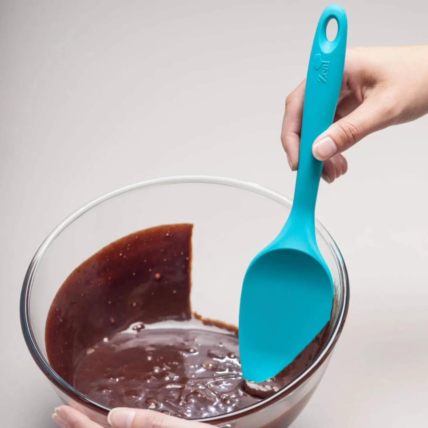 Zeal presents the Silicone Spatula Spoon in Aqua, this spatula spoon is flat-ended making it ideal for cooking, stirring, scraping and mixing. The long tapered edge of this spoon enables you to not only scrape the bottom of bowls but also the sides too, making it the perfect utensil for all cooks kitchens.