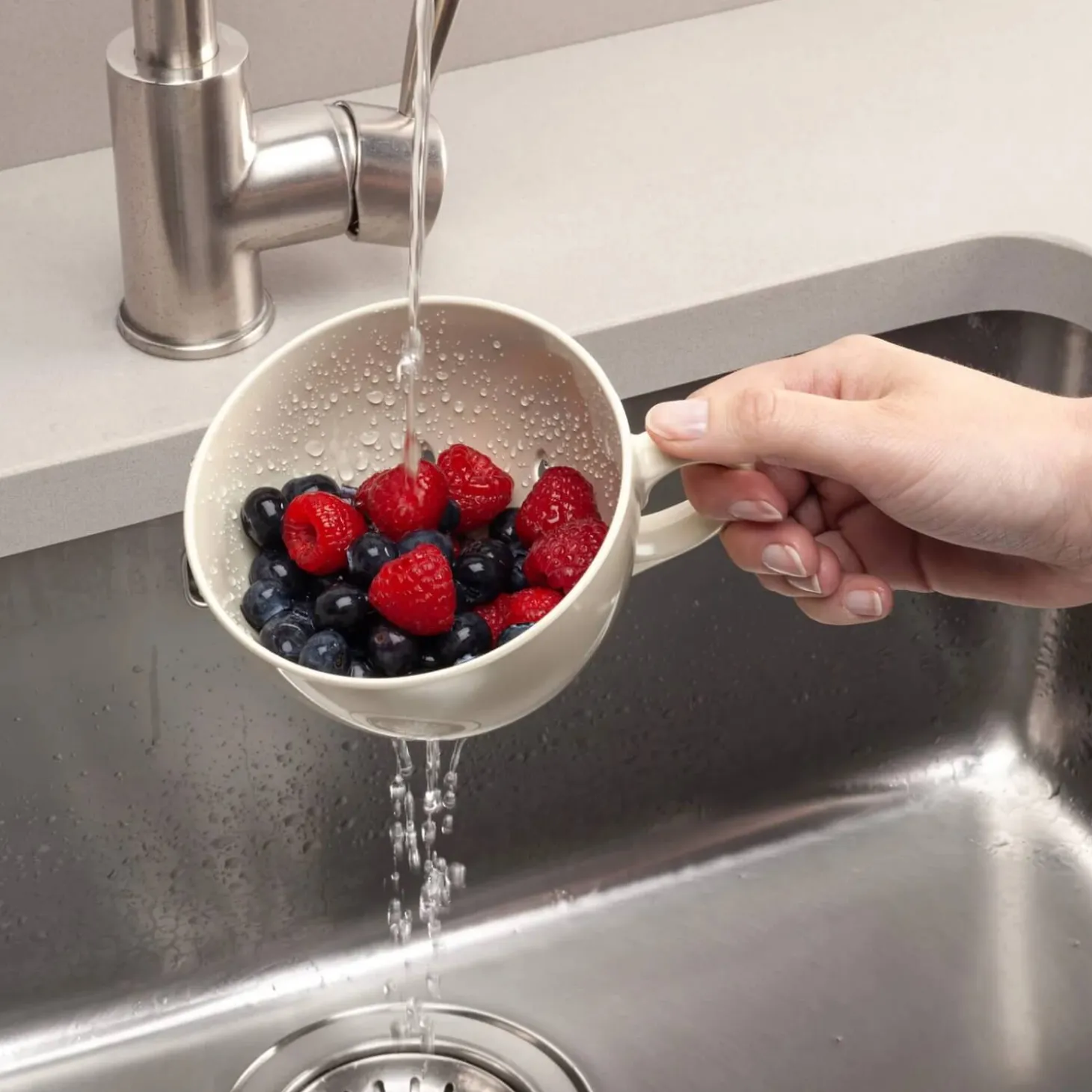 Zeal presents the Berry Colander in Cream, this delightful little colander is about the size of a large teacup with a handle on the side, ideal for draining or rinsing small amounts, like fruit, peas and more. Small, but strong and sturdy, this Berry colander will sit securely in your sink or on your countertop.