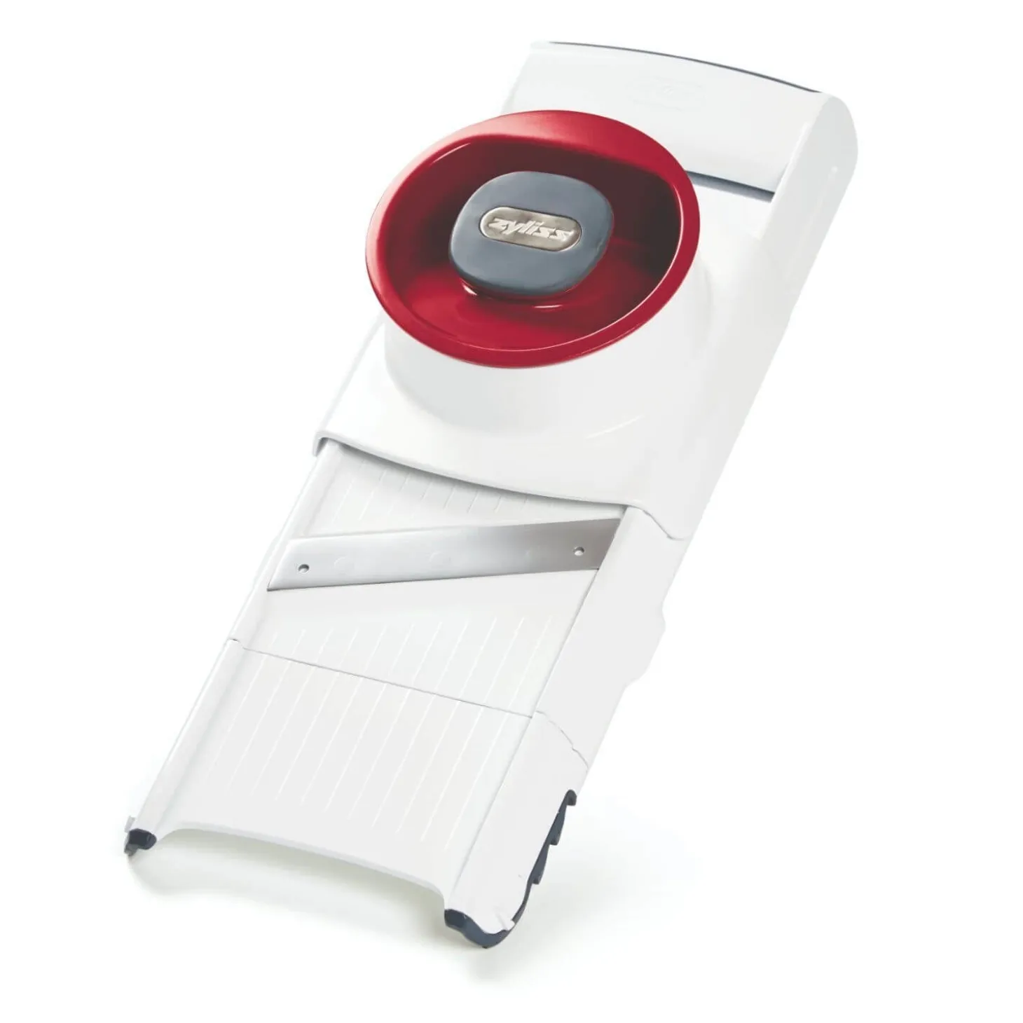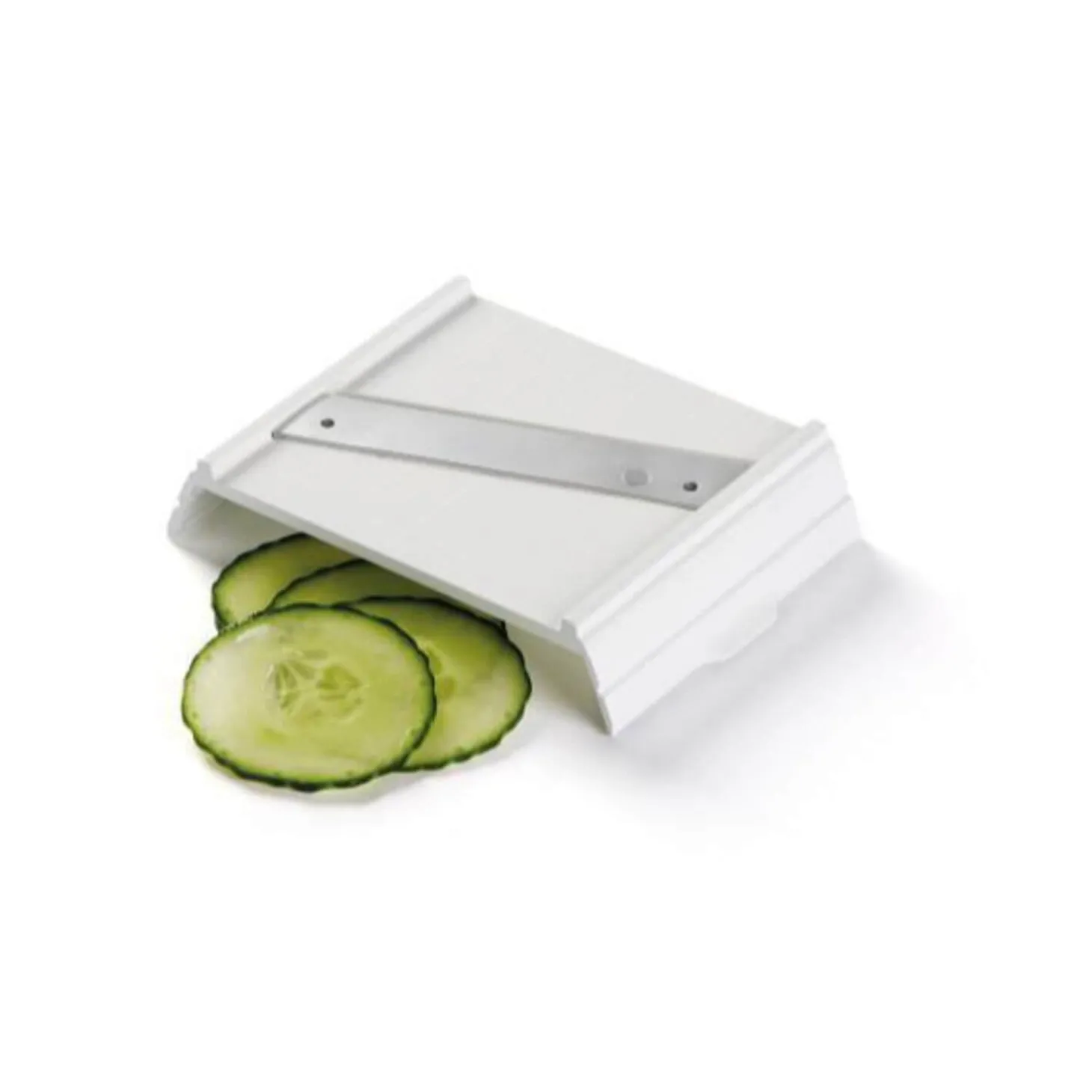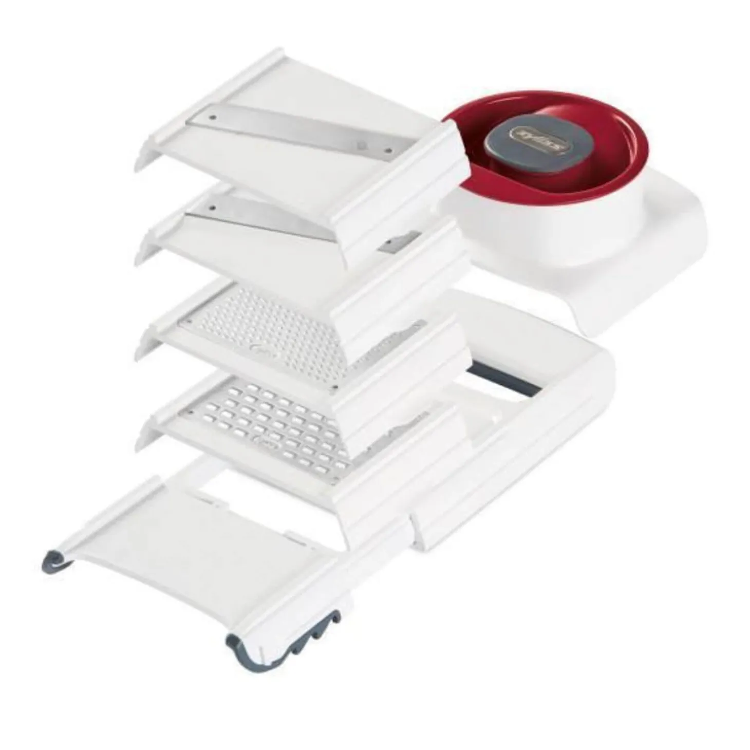 Zyliss presents the 4-in-1 Slicer and Grater. This clever tool is an ideal addition for any cooks kitchen, it enables you to choose various cutting and grating sizes with fine or coarse blades which are easily interchangeable. The built in feed tube allows you to slice longer vegetables, ie carrots or cucumbers. The feet are non-slip and built into the slicer and grater for safety and stability.