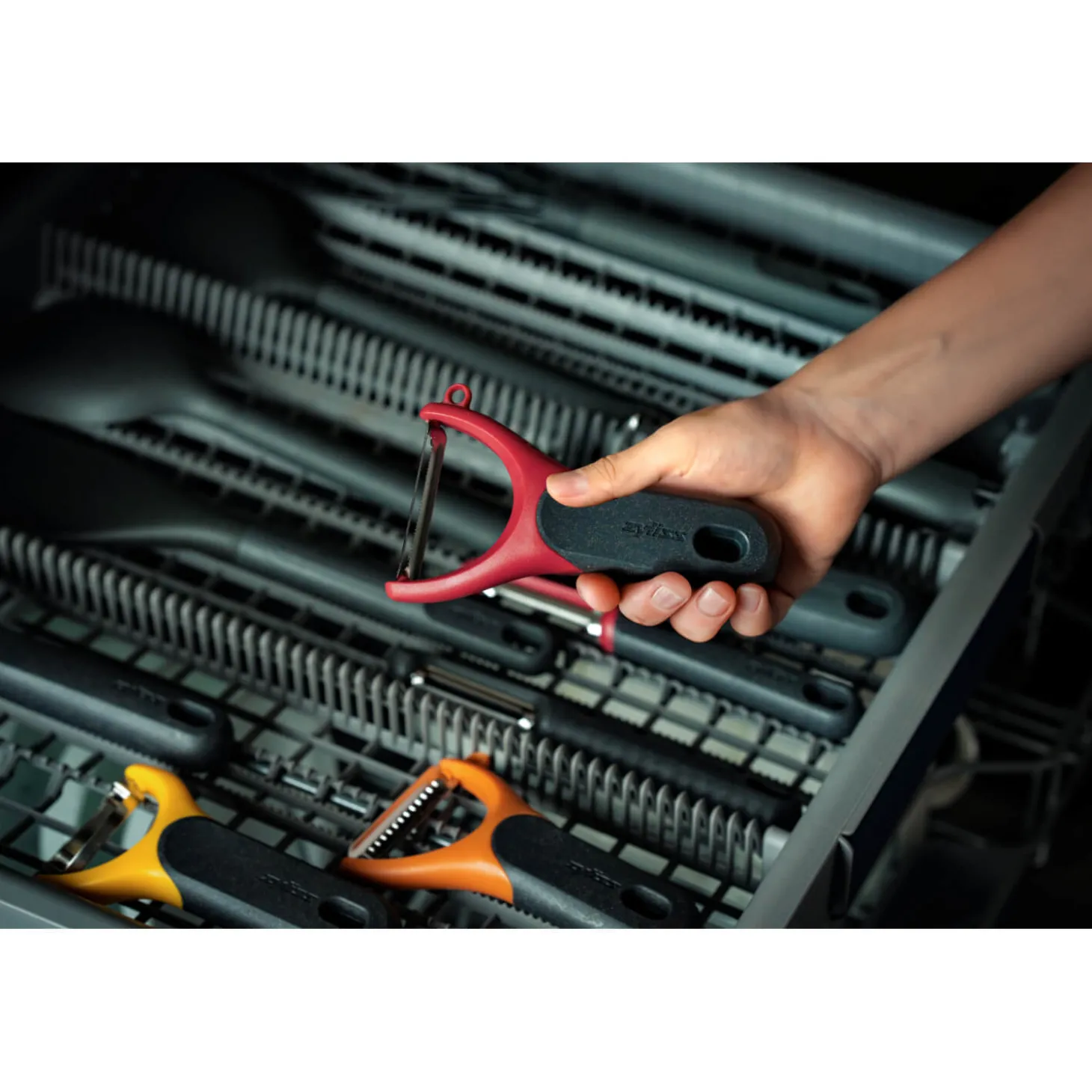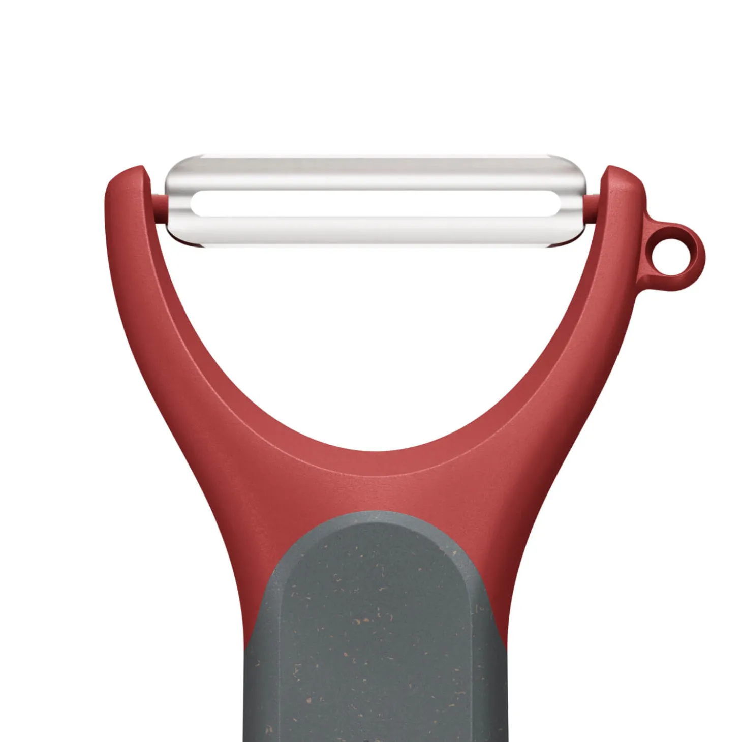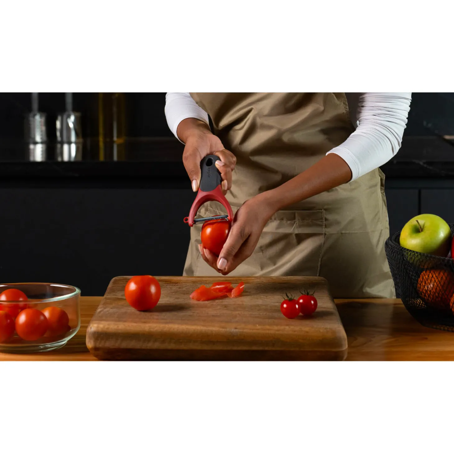 Zyliss presents the Eco Handle Y Soft Skin Peeler. Designed by Zyliss in Switzerland, this versatile tool is perfect for precisely peeling soft fruits such as tomatoes, kiwis, and pears with minimal effort. It also features an integrated eye cutter, allowing you to remove blemishes efficiently. The comfortable ergonomic eco handle, made with 50% less plastic and replaced by wheat straw material makes this kitchen gadget a great sustainable choice!