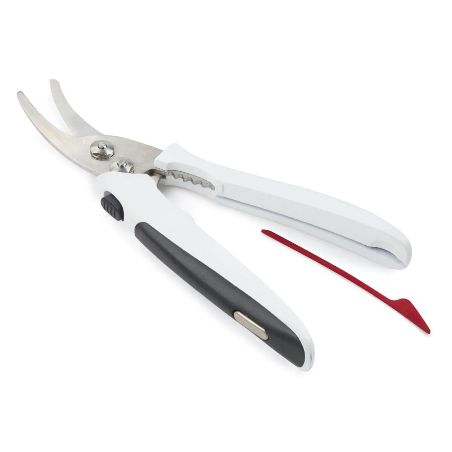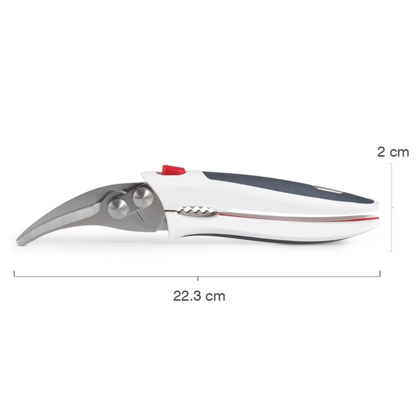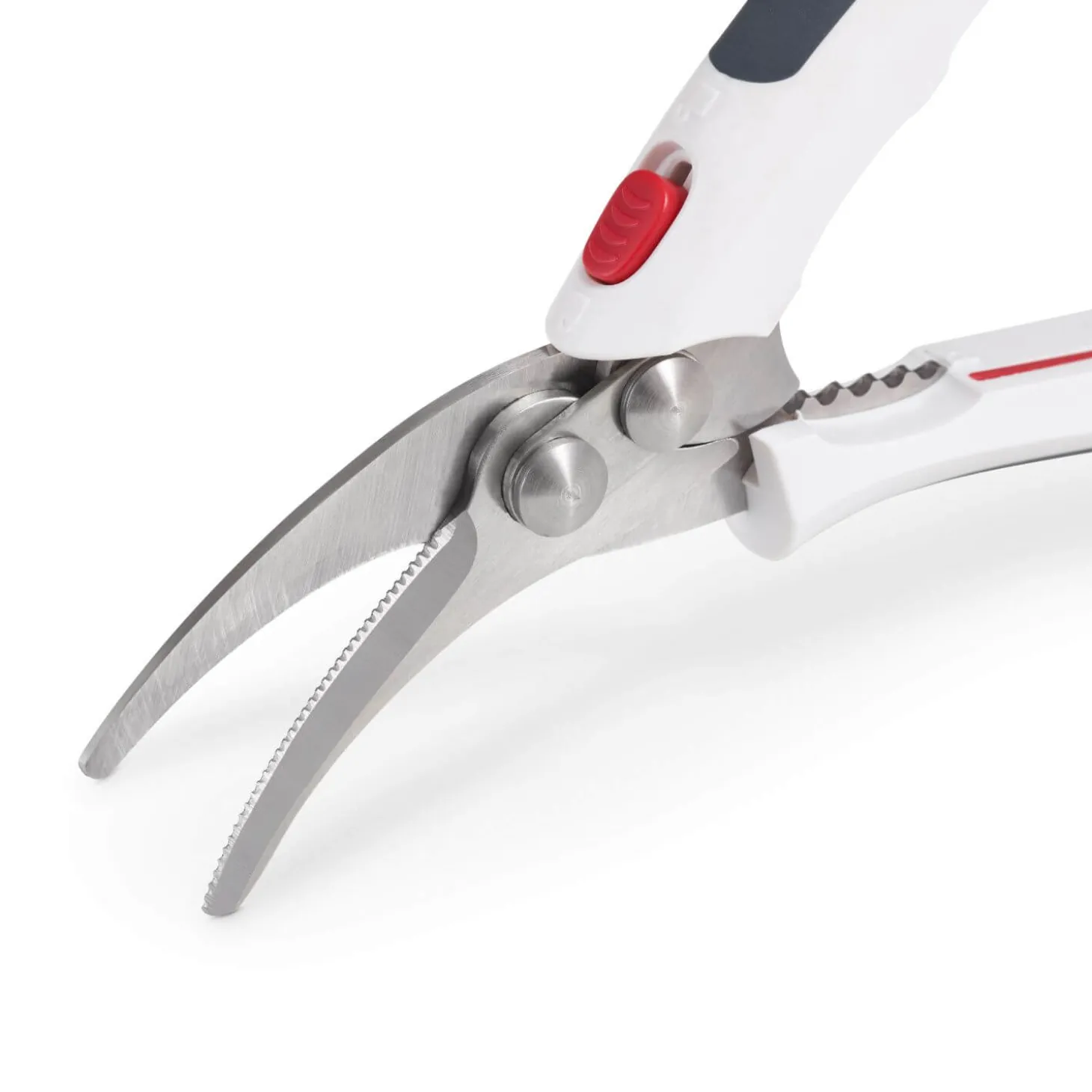 Zyliss presents their Shellfish Shears, with curved, micro-serrated blades that cut through the shells without damaging any of the meat inside. These shears are strong with a cutting mechanism that drives three times more force than standard single-pivot shears. These shears have both an integrated pick and a cracker, making them the ideal shellfish shears for all seafood lovers.