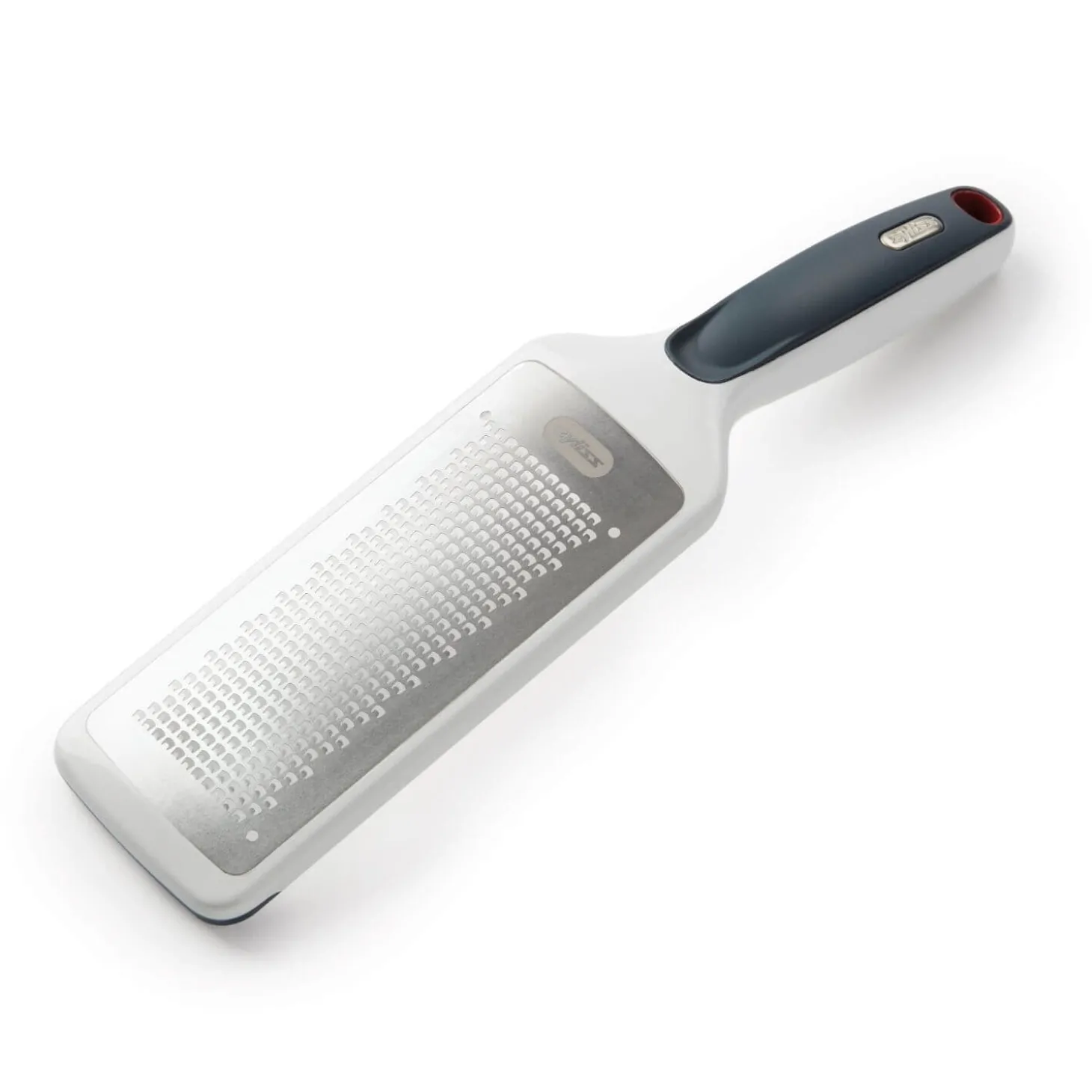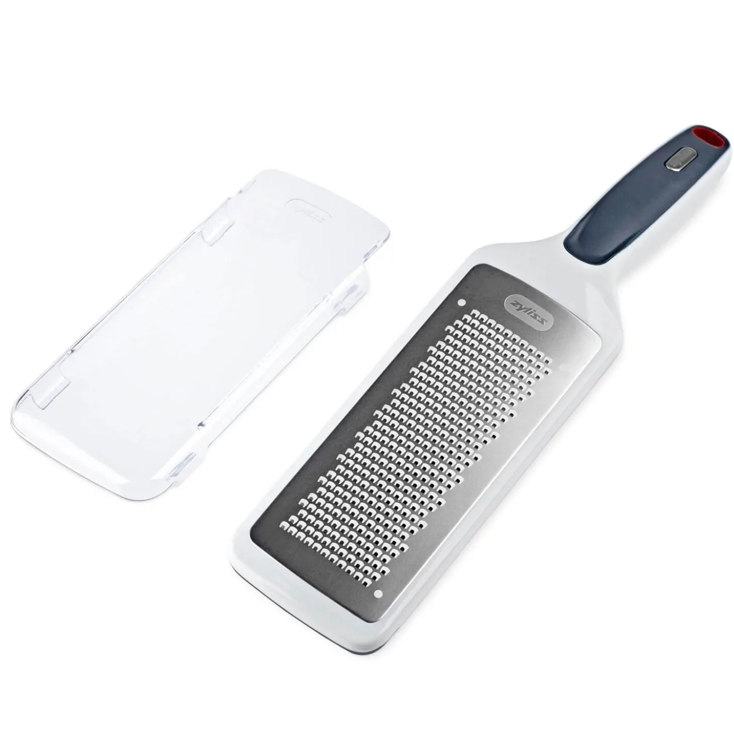 Zyliss presents the Smooth Glide Fine Grater which is ideal for cooks who prefer a fine, light grate of their cheese. It is both suitable for soft and hard cheeses as well as for use on various vegetables and of course chocolate. The sharp cutting edges grate easily without mess or tearing of the produce.