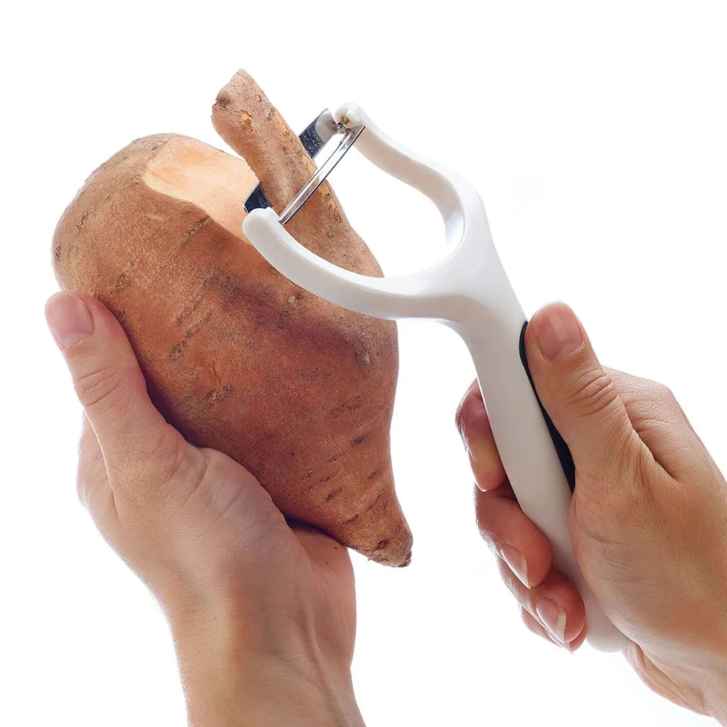 - Strong steel blade for peeling tough skins